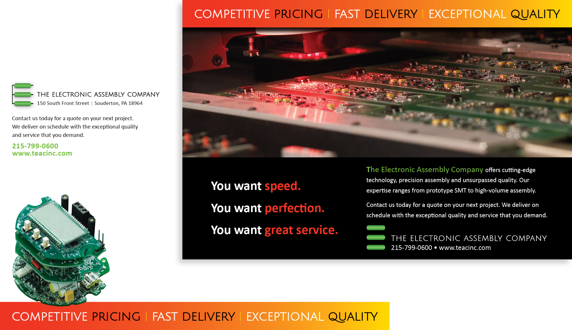 The Electronic Assembly Company (TEAC) is an electronic manufacturing company located in southeastern Pennsylvania. Their full-service facility and skilled technicians deliver precision assembly with unsurpassed quality.